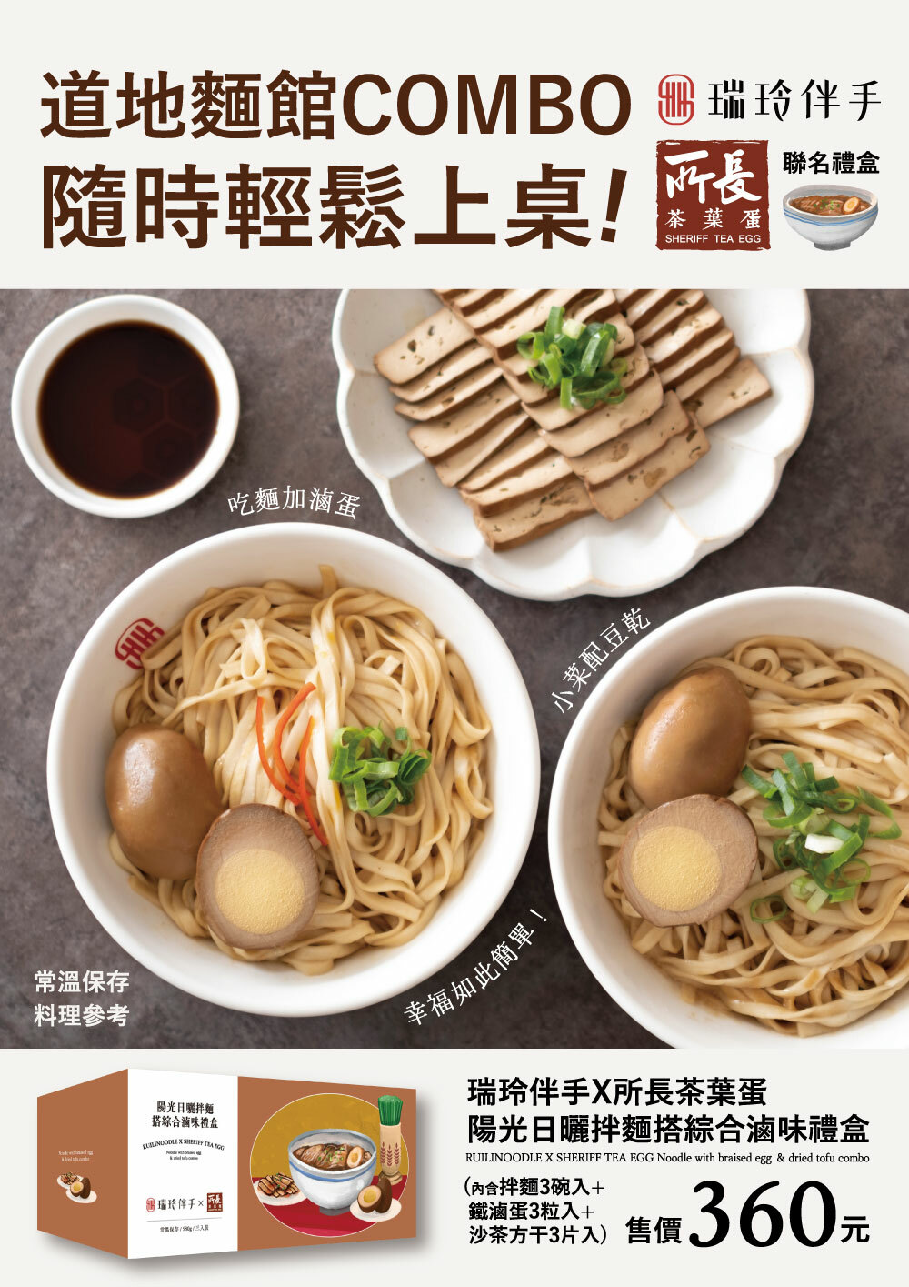 瑞玲伴手X所長茶葉蛋|陽光日曬拌麵搭綜合滷味禮盒(常溫)