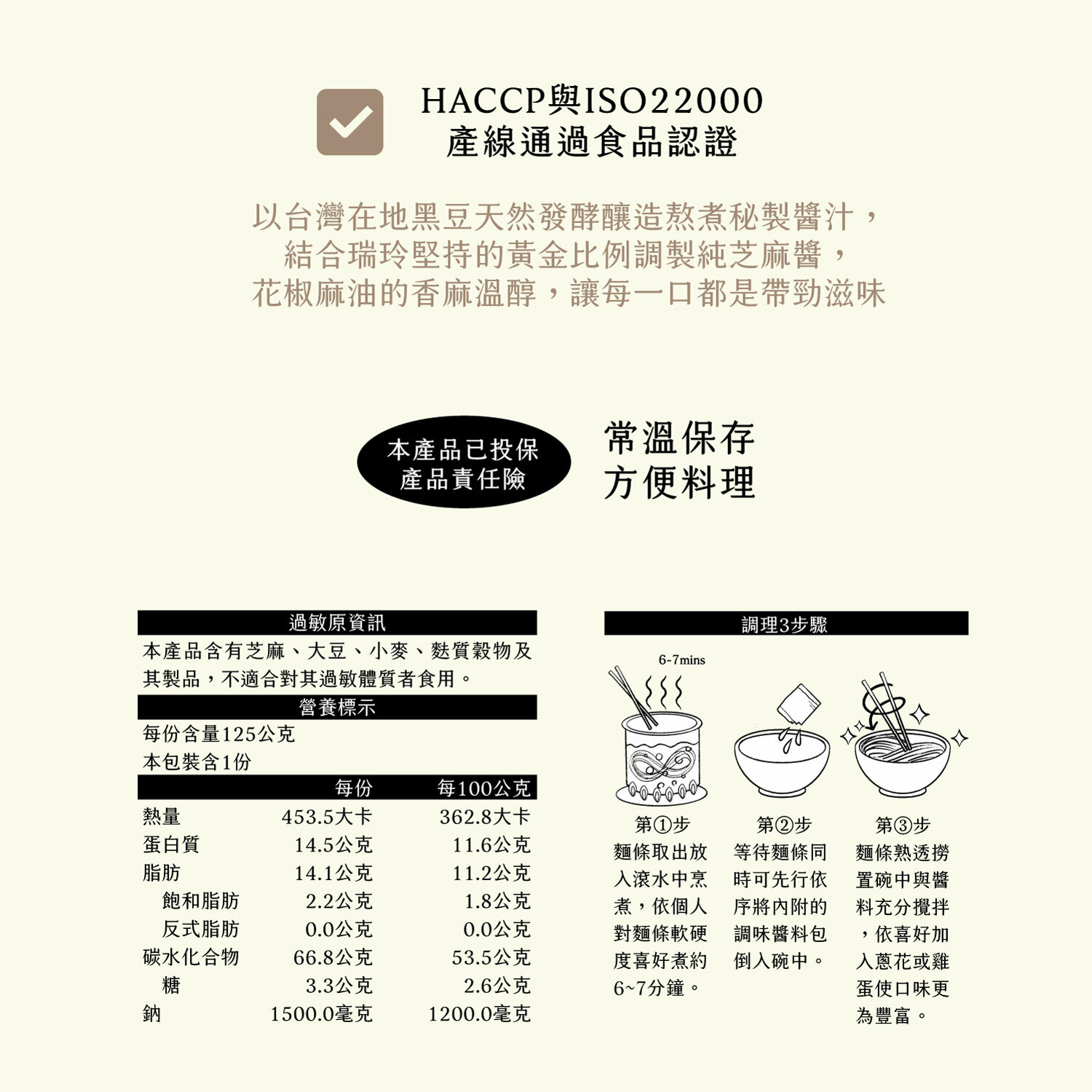 [芝麻醬包]芝麻醬、大豆沙拉油、抗氧化劑(混合濃縮生育醇)。