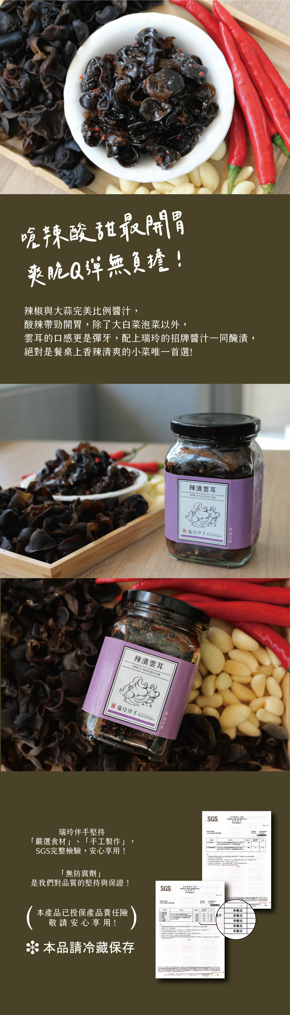 爽脆雲耳,以特調的辣椒生蒜調製醬汁醃漬,酸辣清爽的開胃料理!